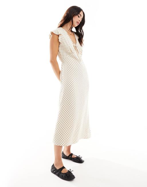 Nobody's Child – Kremowa wiązana sukienka midi w groszki