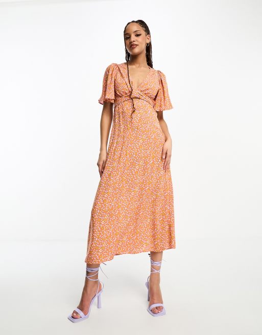 Nobody's Child – London – Pomarańczowa sukienka midi we wzór w serca