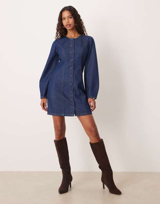 Nobody's Child – Niebieska jeansowa sukienka mini z długimi rękawami