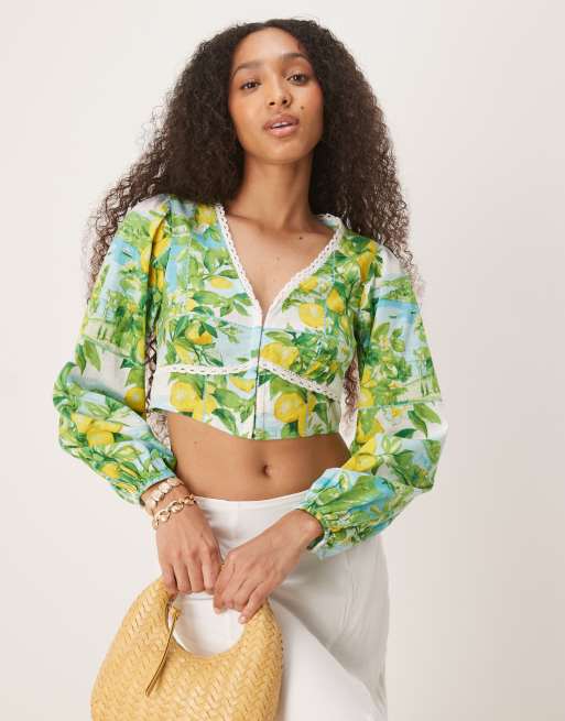 Nobody's Child – Odetta – Krótki top z domieszką lnu we wzór w cytryny