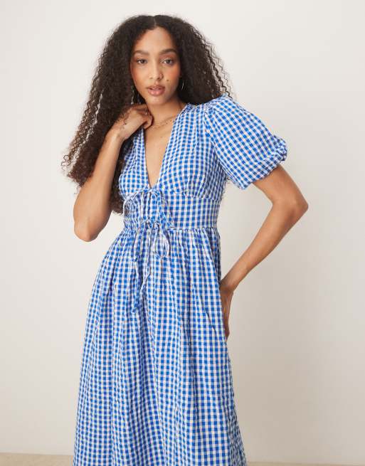 Nobody's Child – Scottie – Sukienka midi z bufkami w niebieską kratkę vichy