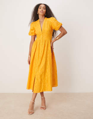 Nobody's Child – Starlight – Pomarańczowożółta sukienka midi z bufkami