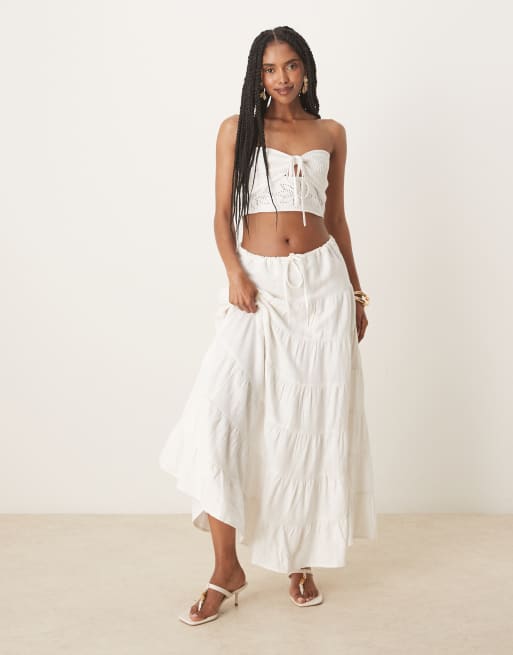 Nobody's Child – Talia – Biała warstwowa spódnica midaxi w stylu boho