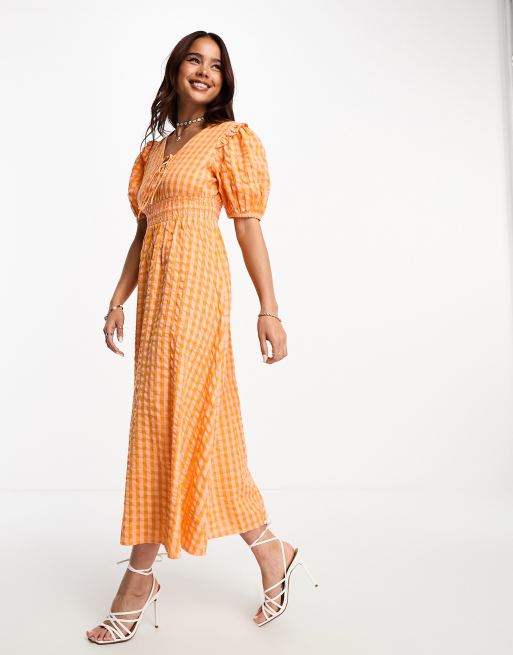 Nobody's Child – Wednesday – Pomarańczowa sukienka midi w kratkę vichy