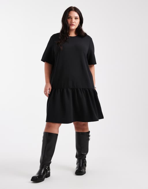 Noisy May Curve – Czarna sukienka mini z obniżonym dołem z materiału w stylu scuba
