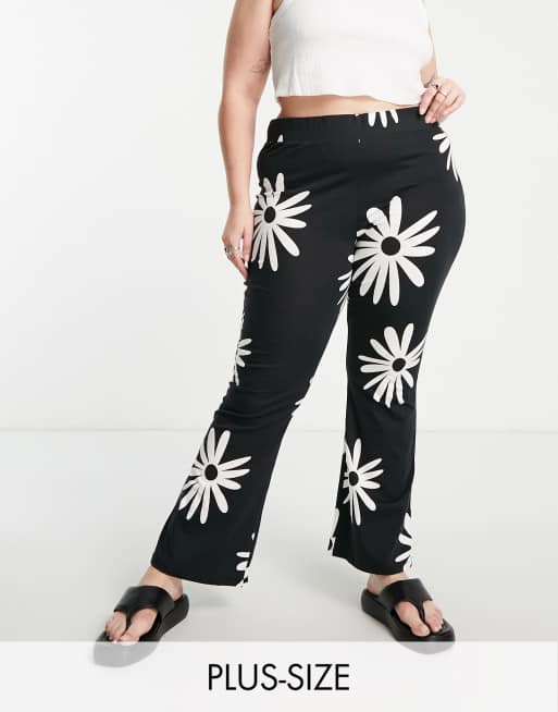 Noisy May Curve – Czarne spodnie z rozszerzanymi nogawkami we wzór w stokrotki