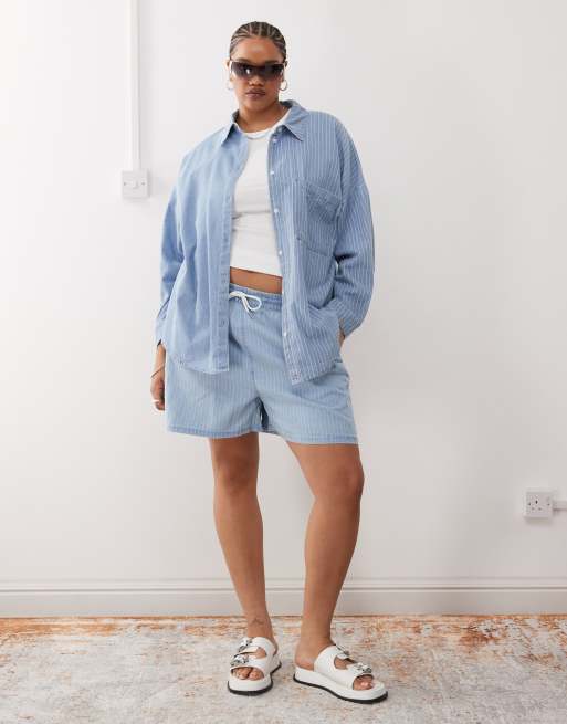 Noisy May Curve – Jasnoniebieski jeansowy zestaw w paski