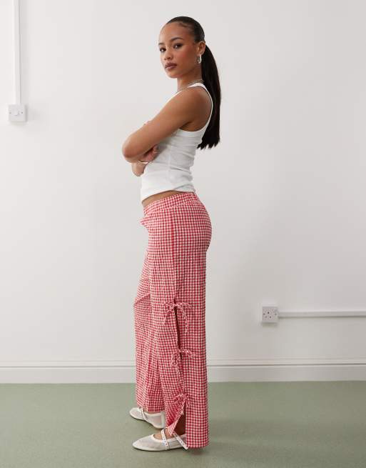 Noisy May Petite – Spodnie w czerwoną kratkę vichy z wiązanymi z boku szerokimi nogawkami