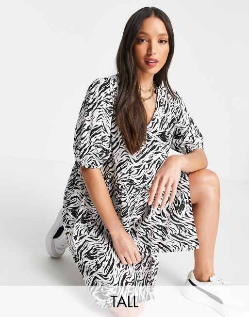 Noisy May Tall – Exclusive – Luźna sukienka mini na guziki, w zwierzęcy wzór