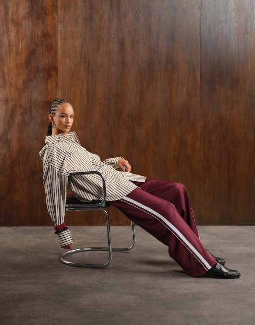 Noisy May – Bordowe joggersy z szerokimi nogawkami i lampasami