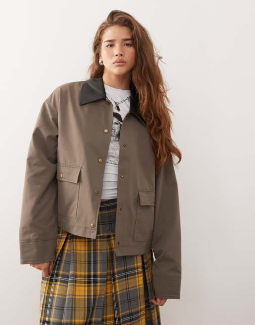 Noisy May – Brązowa kurtka typu barn z kołnierzem z imitacji skóry