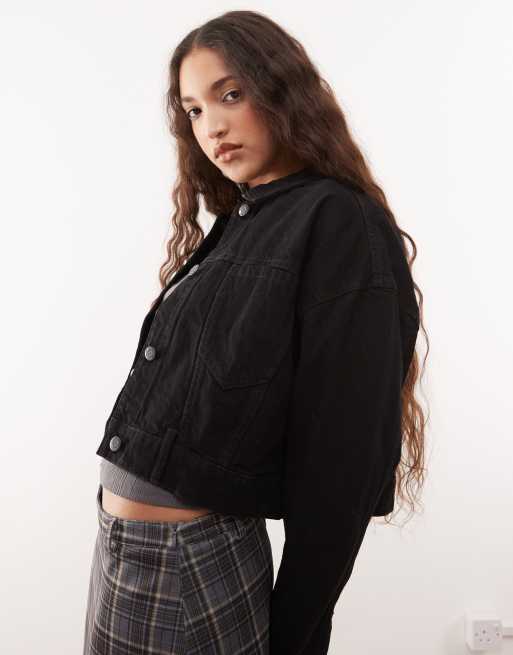 Noisy May – Czarna kurtka jeansowa o krótkim fasonie i pudełkowym kroju
