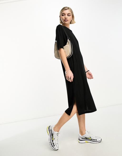 Noisy May – Czarna sukienka t-shirtowa midi z rozcięciem