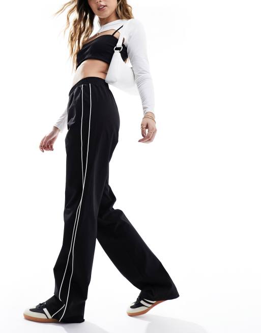 Noisy May – Czarne spodnie z białymi lampasami i elastyczna talią