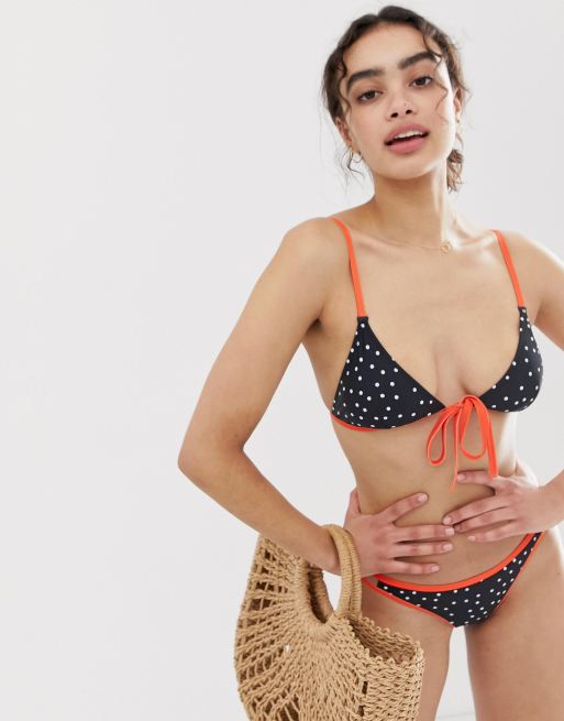 Noisy May - Góra od bikini w kropki z trójkątnymi miseczkami z neonowymi lamówkami