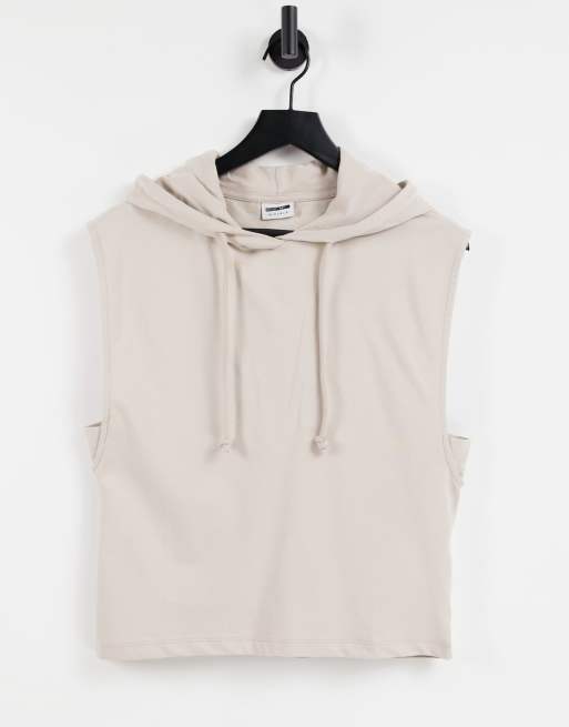 Noisy May – Kamiennobeżowa bawełniana bluza z kapturem bez rękawów