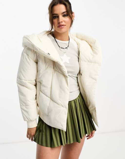 Noisy May – Kremowa ocieplana kurtka oversize z kapturem