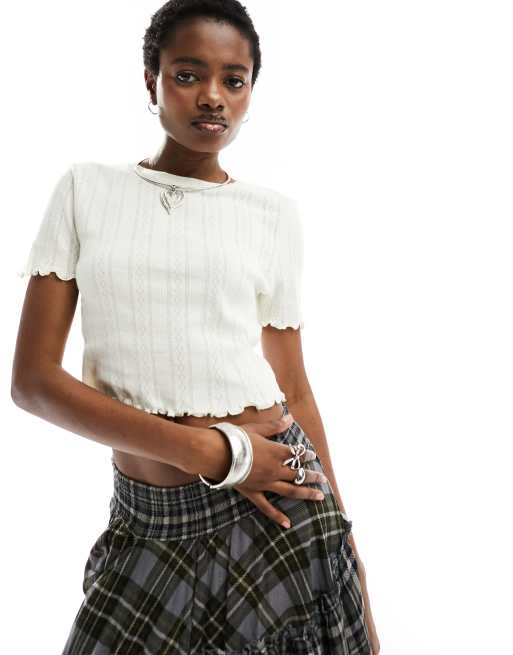 Noisy May – Kremowy krótki top o ozdobnym splocie