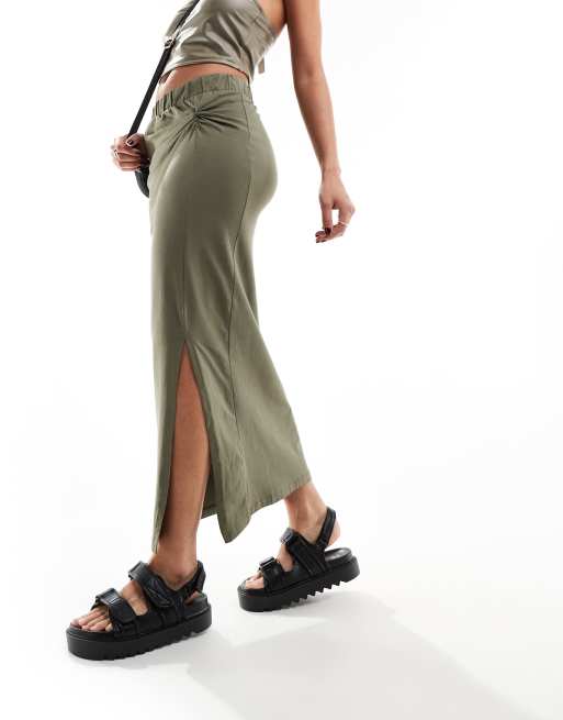 Noisy May – Skręcona z przodu spódnica maxi w kolorze khaki z rozcięciem u dołu
