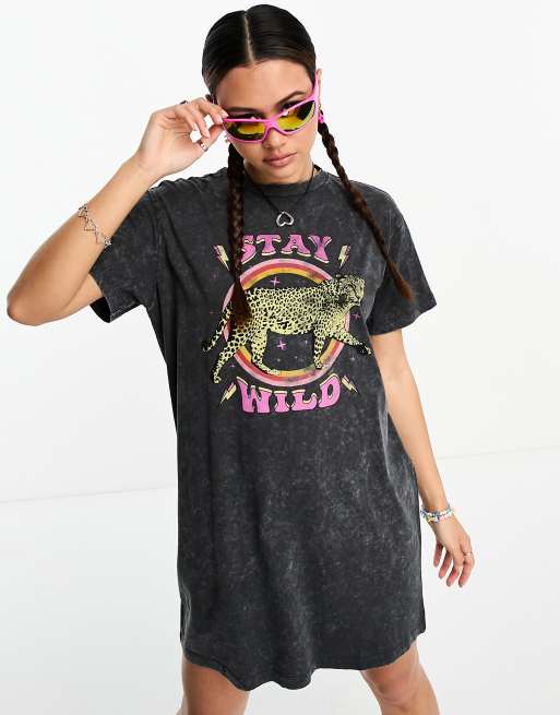 Noisy May – Sukienka T-shirtowa w spranym czarnym kolorze z nadrukiem