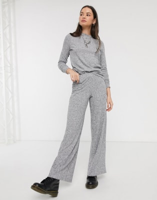 Noisy May – Szary dzianinowy zestaw ze spodniami z szerokimi nogawkami