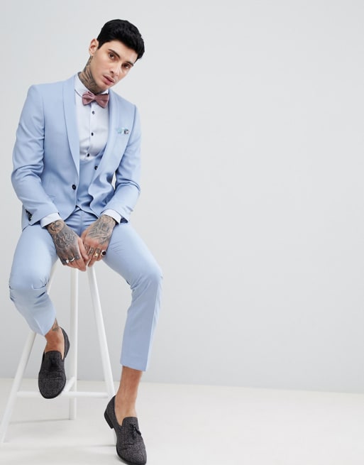 Noose & Monkey – Jasnoniebieski ślubny garnitur o bardzo obcisłym kroju