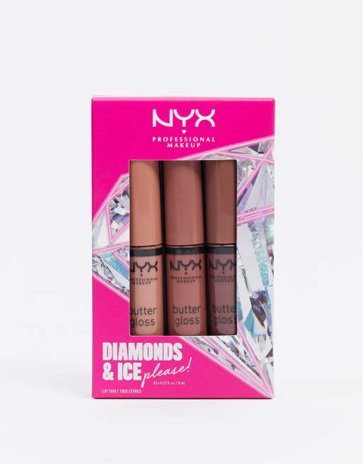 NYX Professional Makeup – Diamonds & Ice Please Butter Gloss – Zestaw 3 błyszczyków, w zestawie 9% taniej! – Brown Nudes 02