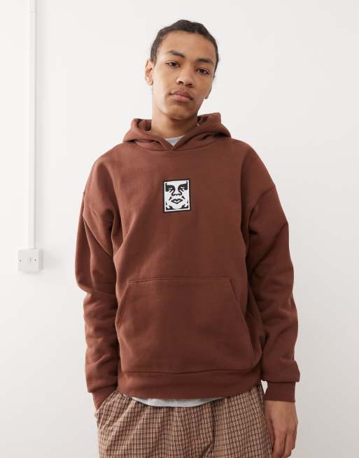 Obey – Bordowa gruba bluza z kapturem i z logo z oczami