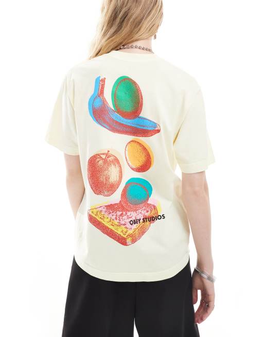 Obey – Ciemnobrązowy T-shirt z logo z motywem owoców