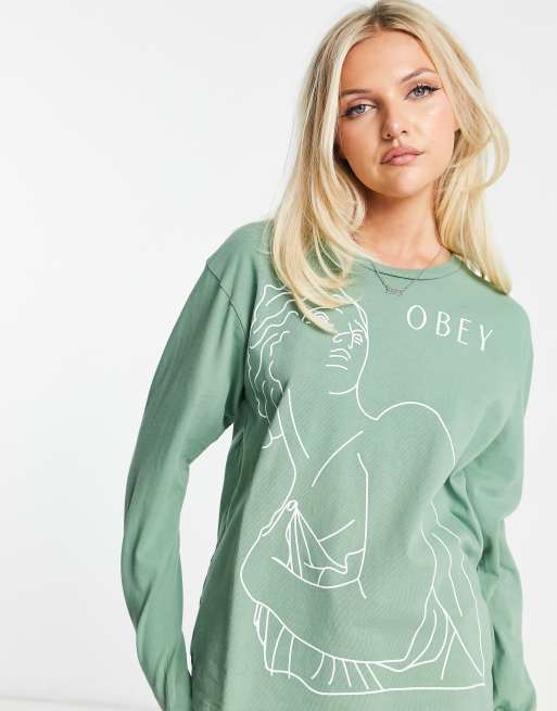 Obey – Covet – Zielony T-shirt z długimi rękawami i ze wzorem