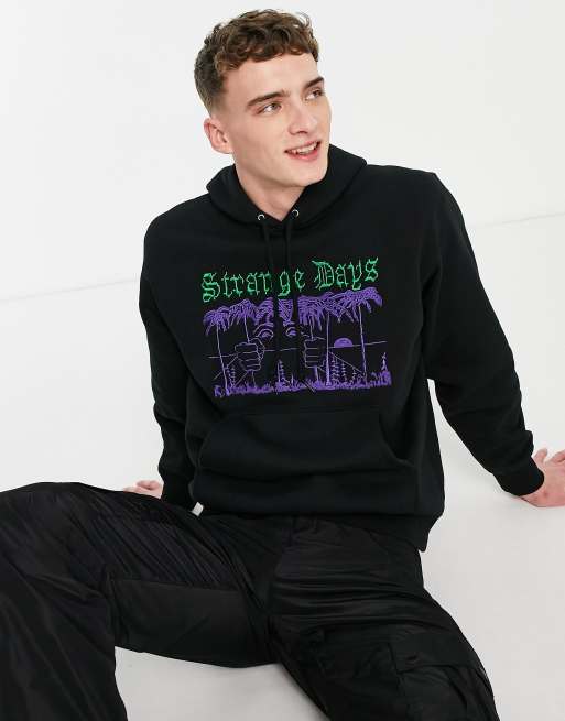 Obey – Czarna bluza z kapturem i napisem „Strange Days”