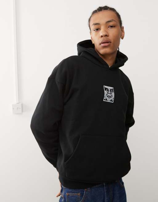 Obey – Czarna gruba bluza z kapturem i z logo z oczami