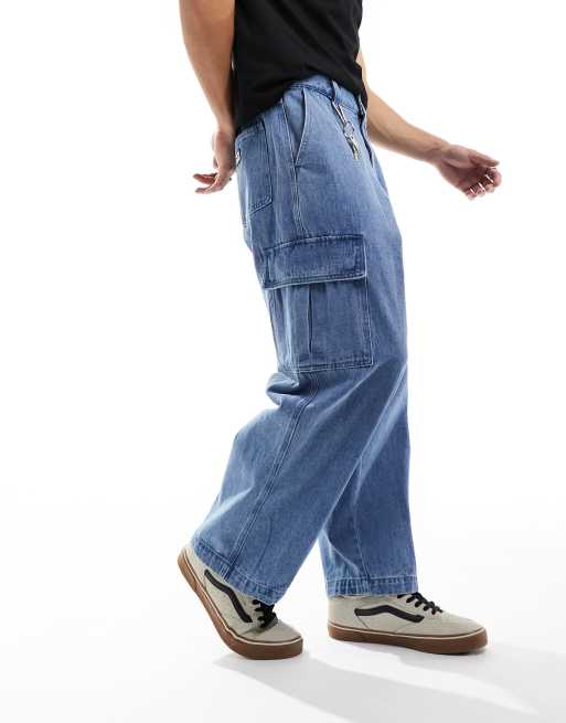 Obey – Jasnoniebieskie luźne bojówki jeansowe