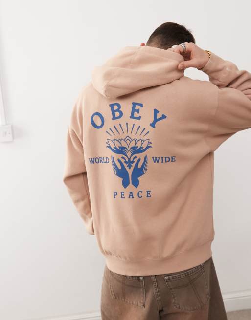 Obey – Lotus – Beżowa bluza z kapturem i grafiką z rękami