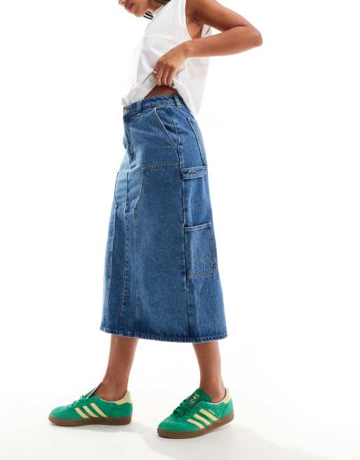 Obey – Niebieska jeansowa spódnica midi