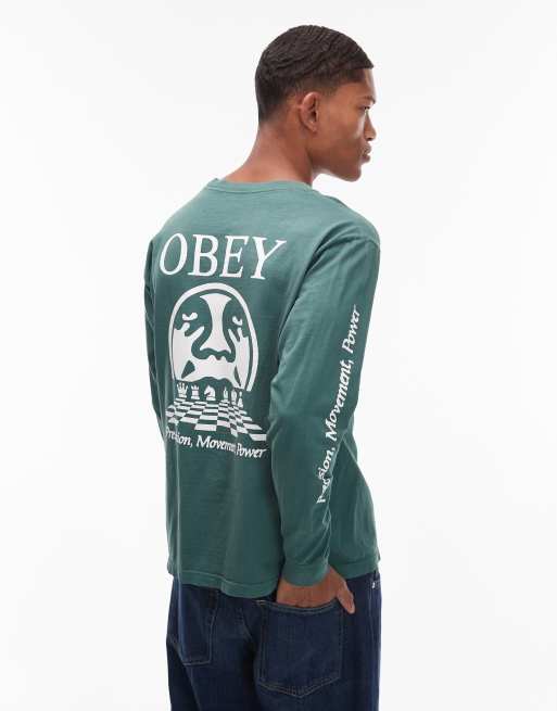 Obey – Precision – Ciemnozielony T-shirt z długim rękawami i nadrukiem na plecach