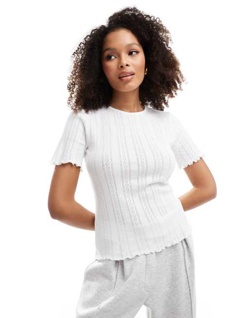 Object – Biały ażurowy T-shirt z krótkimi rękawami
