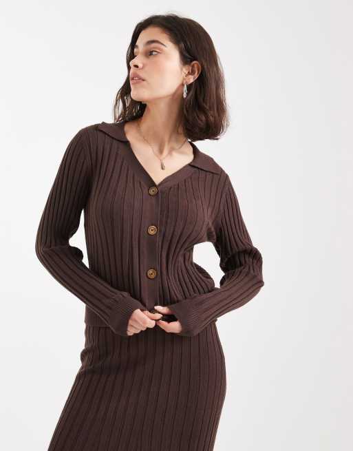 Object – Brązowy sweter z prążkowanej dzianiny zapinany na guziki z przodu, część zestawu