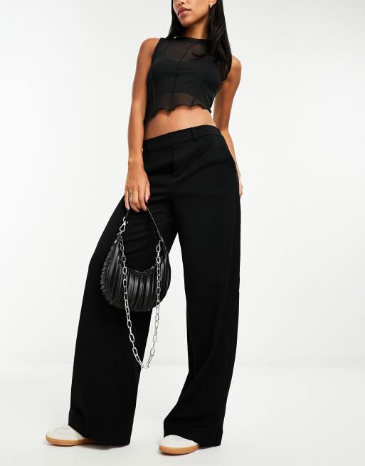 Object – Czarne spodnie bez zapięcia ze średnim stanem