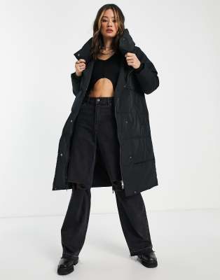 Object – Czarny ocieplany płaszcz puchowy z wysokim kołnierzem