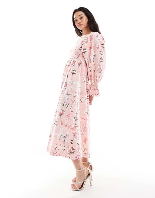 Object – Luźna różowa sukienka midi we wzór w rybki
