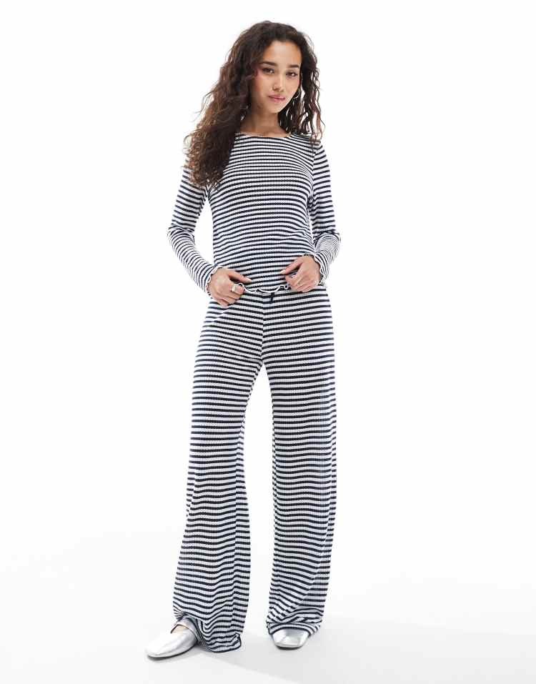 Object – Prążkowane dżersejowe spodnie z szerokimi nogawkami w granatowe paski, część zestawu