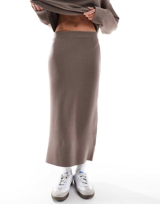 Object – Szarobrązowa usztywniana spódnica dzianinowa midi, część zestawu
