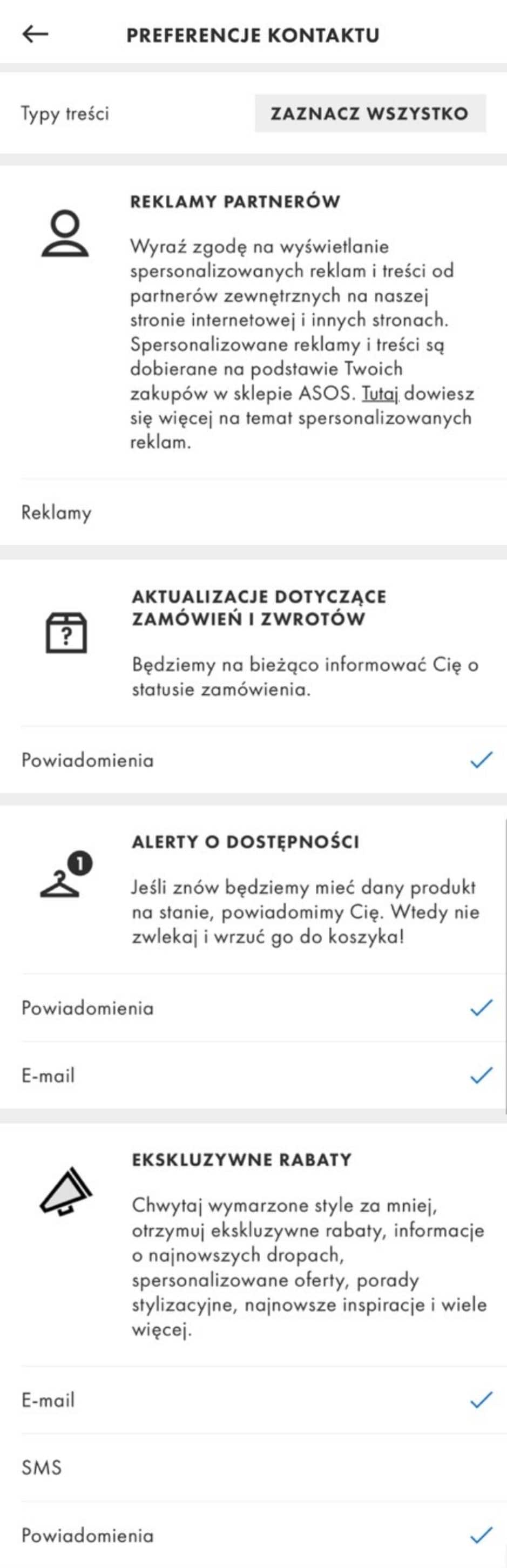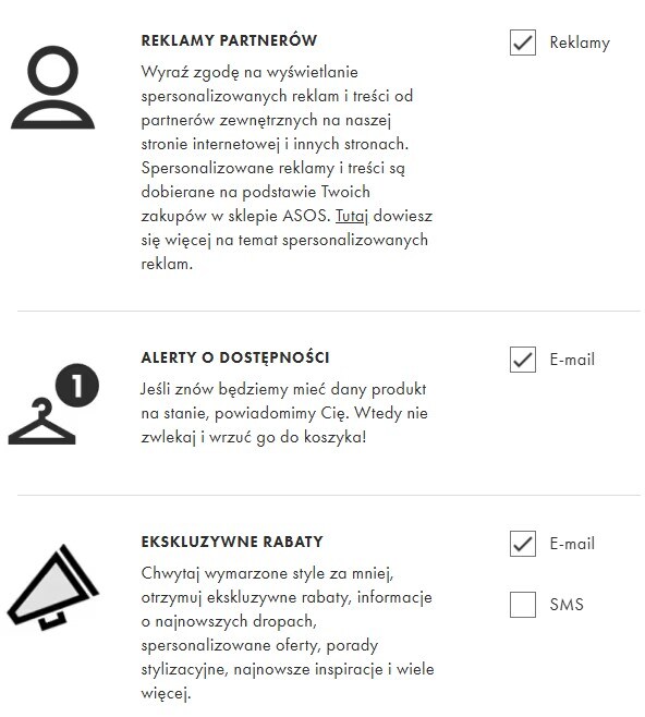 Subskrypcje i powiadomienia ASOS