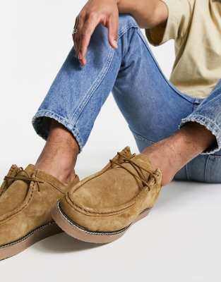 Office – Beżowe zamszowe buty derby z mokasynowym przodem