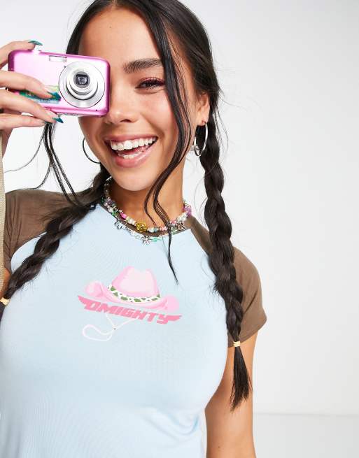 O Mighty – T-shirt z kowbojską grafiką i kontrastowym wykończeniem