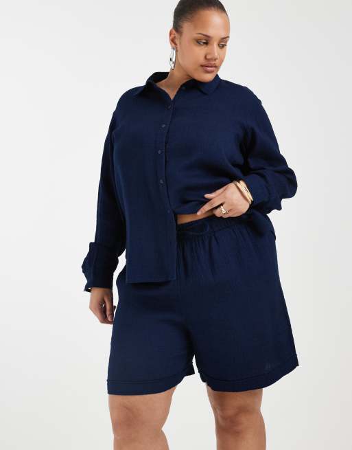 ONLY Curve – Ciemnoniebieski zestaw z kory: koszula i szorty
