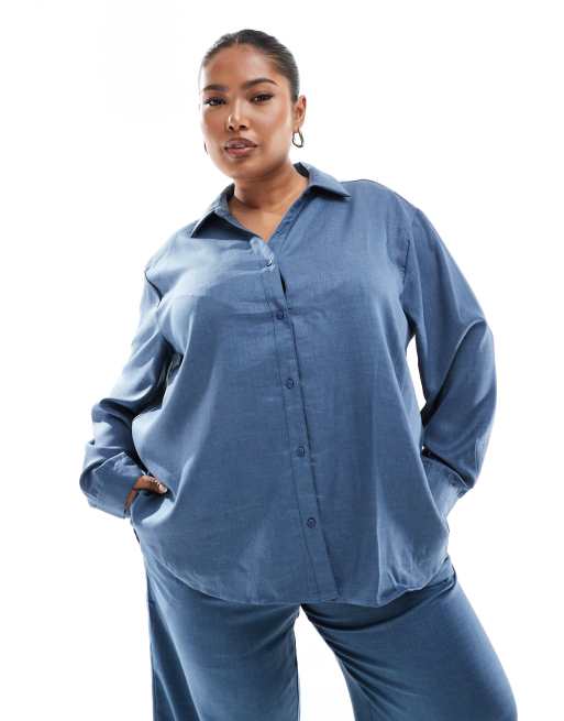 ONLY Curve – Granatowa koszula z tkaniny chambray z długimi rękawami, część zestawu