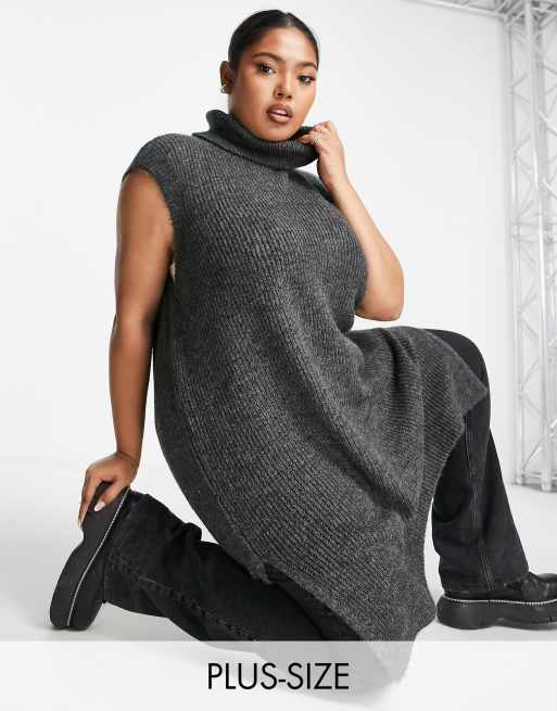 Only Curve – Szara dzianinowa kamizelka o wydłużonym fasonie z golfem