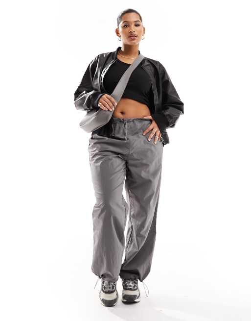 Only Curve – Szare spodnie parachute ze średnim stanem